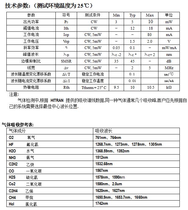 气体检测专用激光器特征: